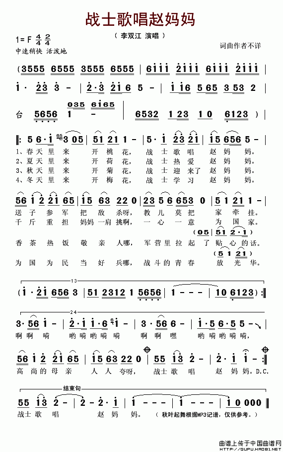 >> 战士歌唱赵妈妈-李双江(简谱)