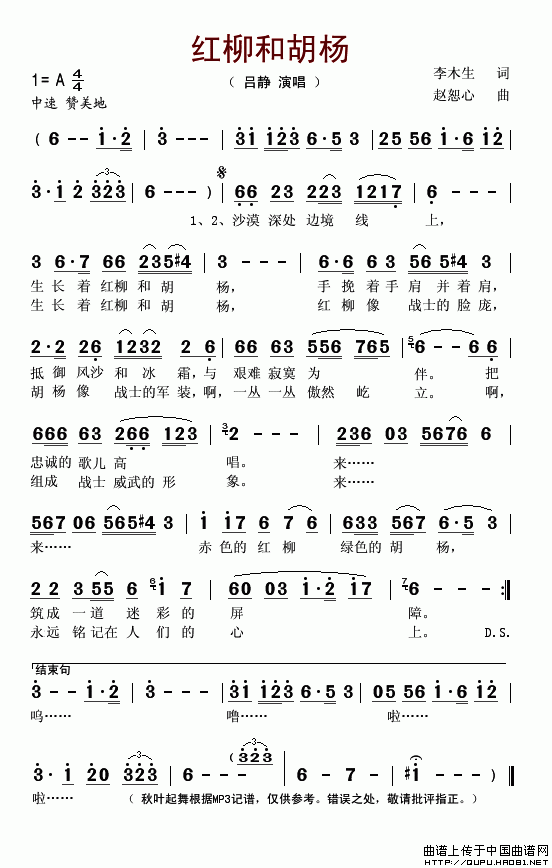 红柳和胡杨 歌词:
