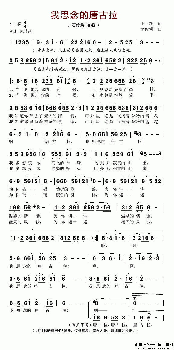 我思念的唐古拉 歌词: