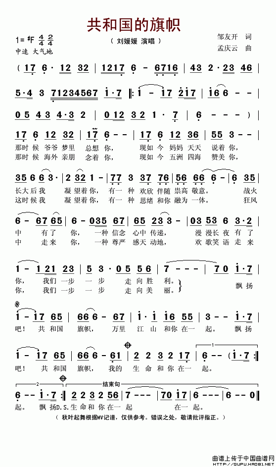 >> 共和国的旗帜-刘媛嫒(简谱)