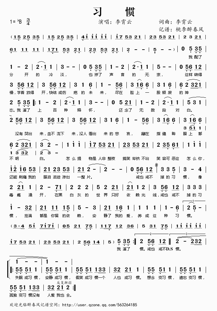 习惯(电视剧《裸婚时代》插曲)——李慧珍(简谱)