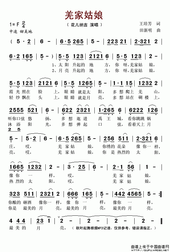 羌家姑娘 歌词: