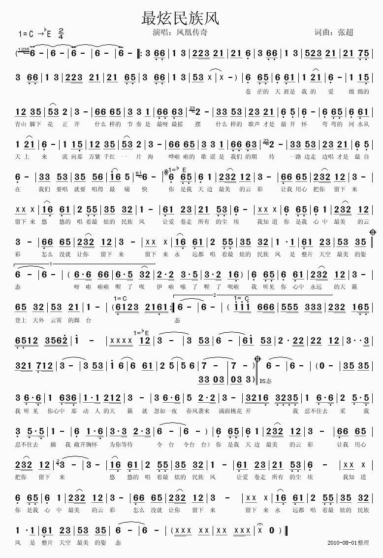 自由飞翔-凤凰传奇(钢琴谱_五线谱)