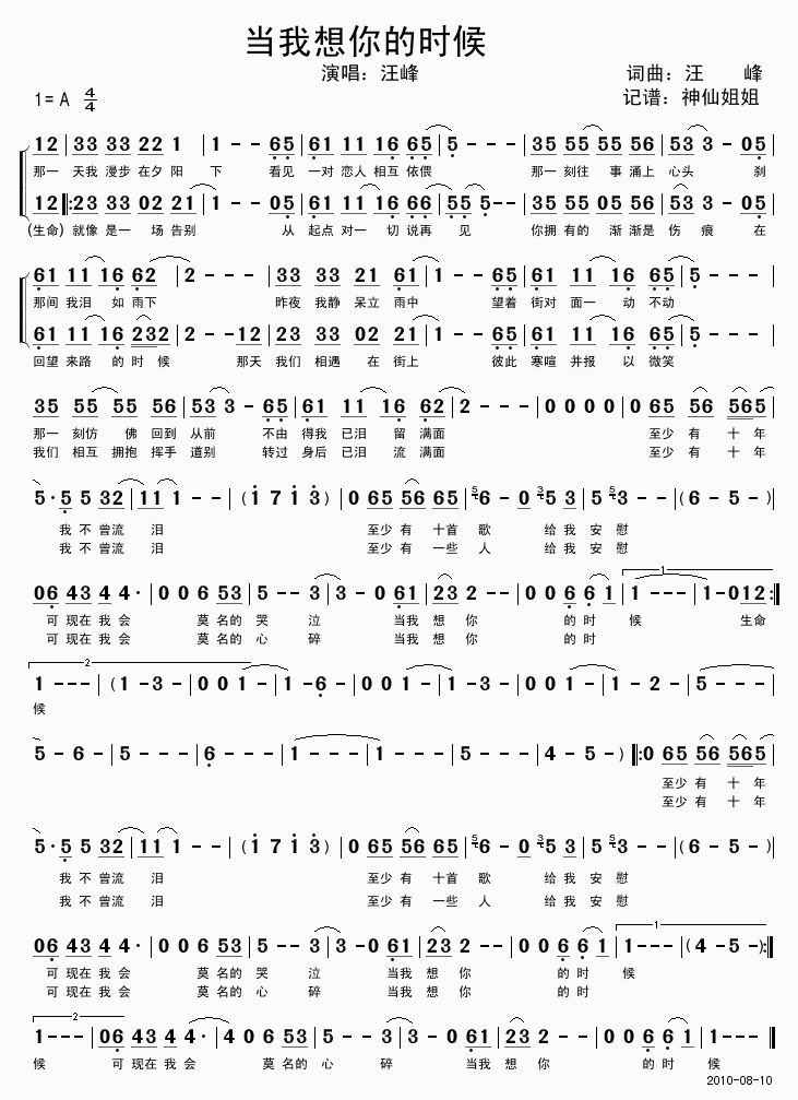 当我想你的时候-汪峰(吉他谱_六线谱)