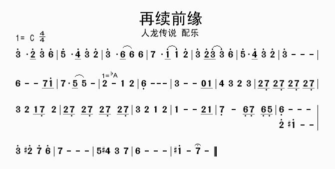 再续前缘-《人龙传说》配乐(简谱)