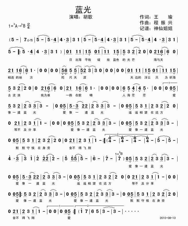 爱你不会变-胡歌(电视剧《别爱我》插曲简谱)