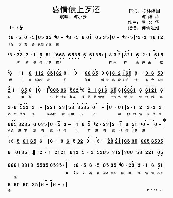 双人枕头-罗时丰 陈小云(闽南语简谱)