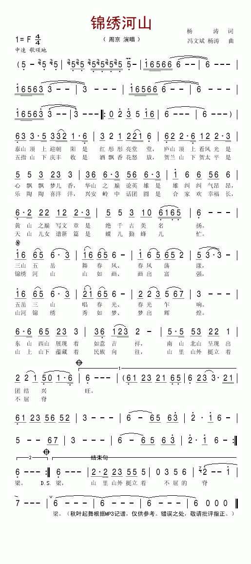 >> 锦绣河山-周京(简谱)