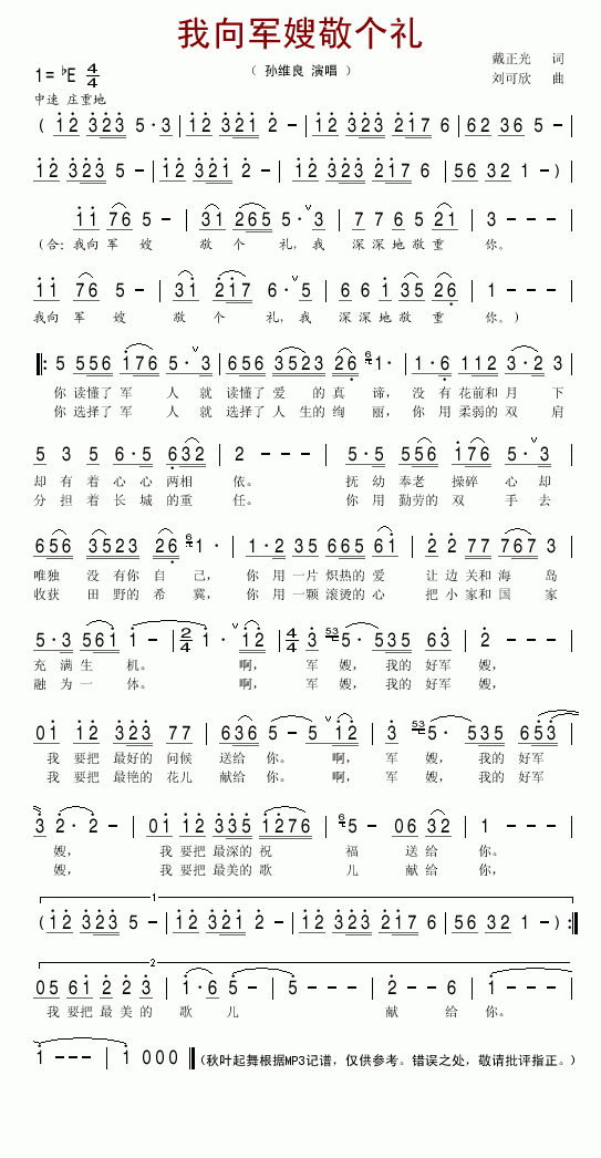 >> 我向军嫂敬个礼-孙维良(简谱)