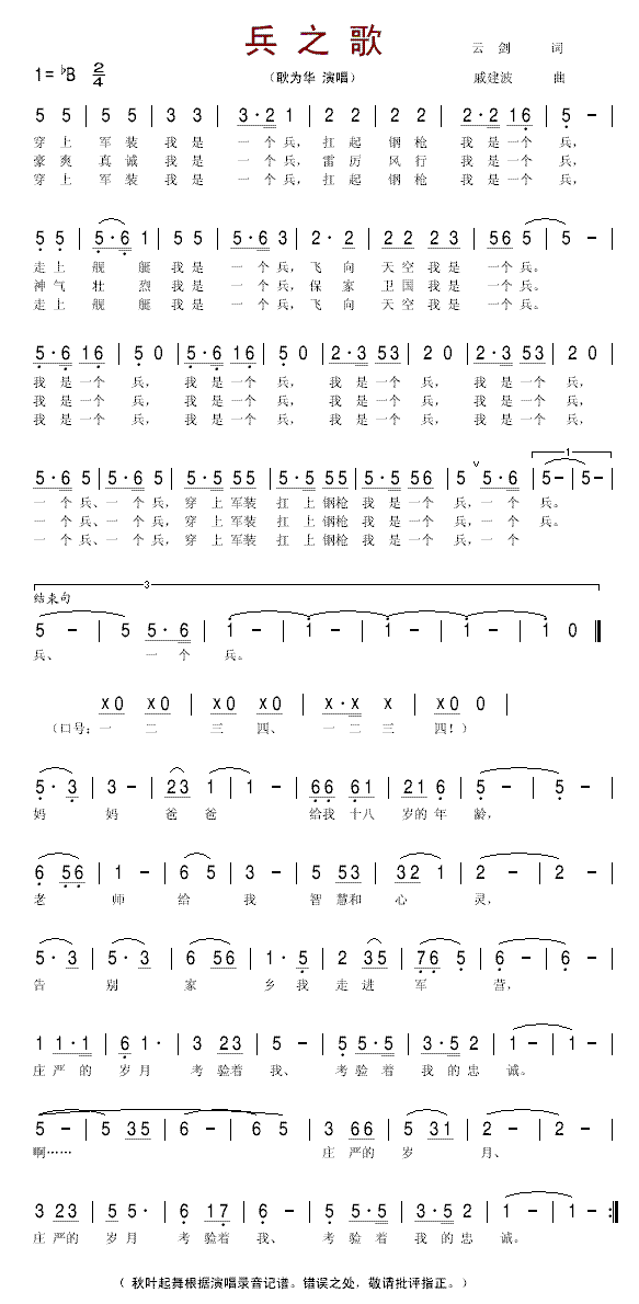 >> 兵之歌-耿为华(简谱)