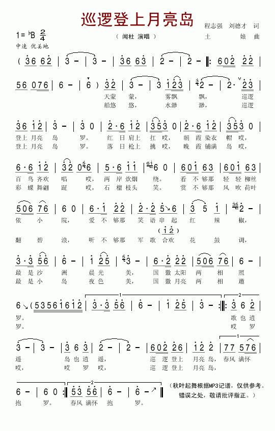 巡逻登上月亮岛-闻杜(简谱_第二版)