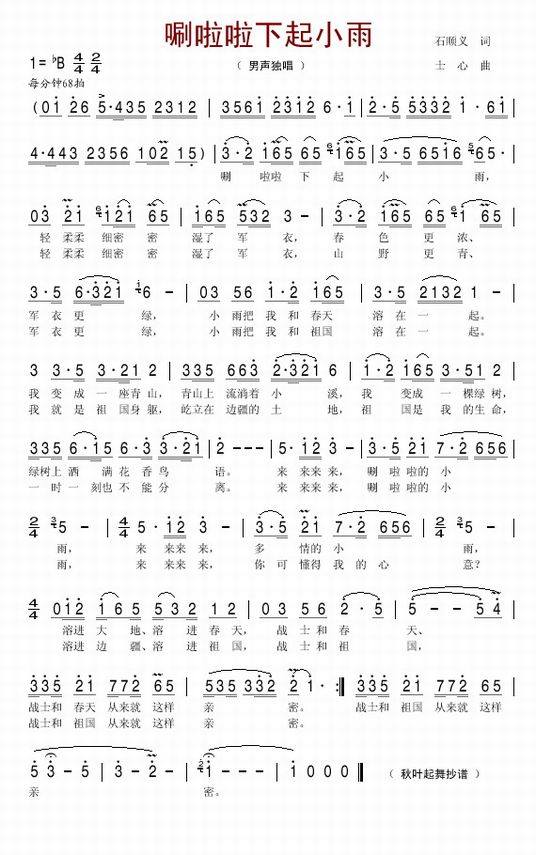 >> 唰啦啦下起小雨-阎维文(简谱)