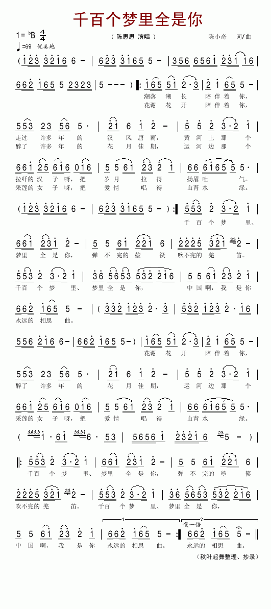 >> 千百个梦里全是你-陈思思(简谱)