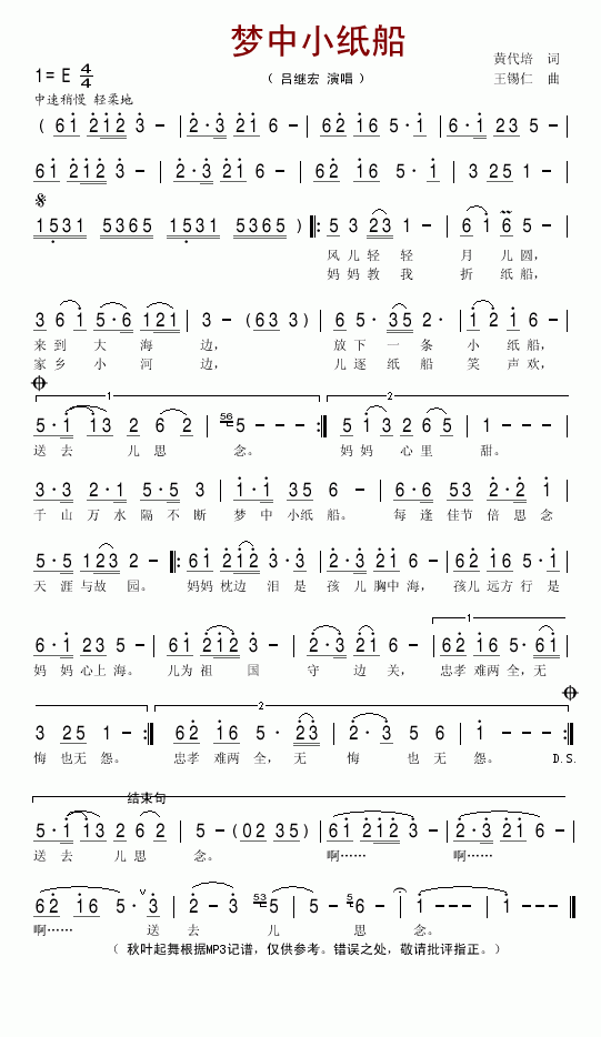 妈妈的歌谣-吕继宏(简谱+线谱)