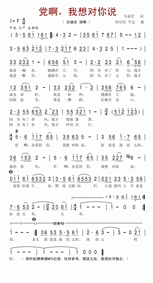党啊,我想对你说-吕继宏(简谱)