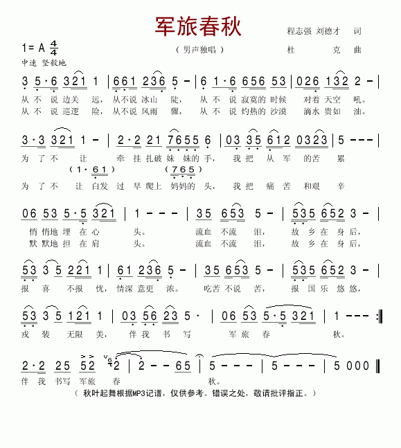 军旅春秋-男声独唱(简谱)
