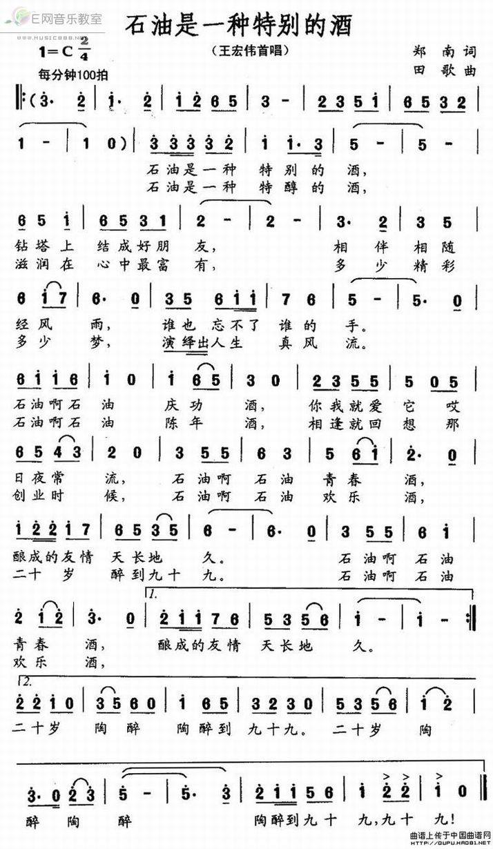>> 石油是一种特别的酒-王宏伟(简谱)