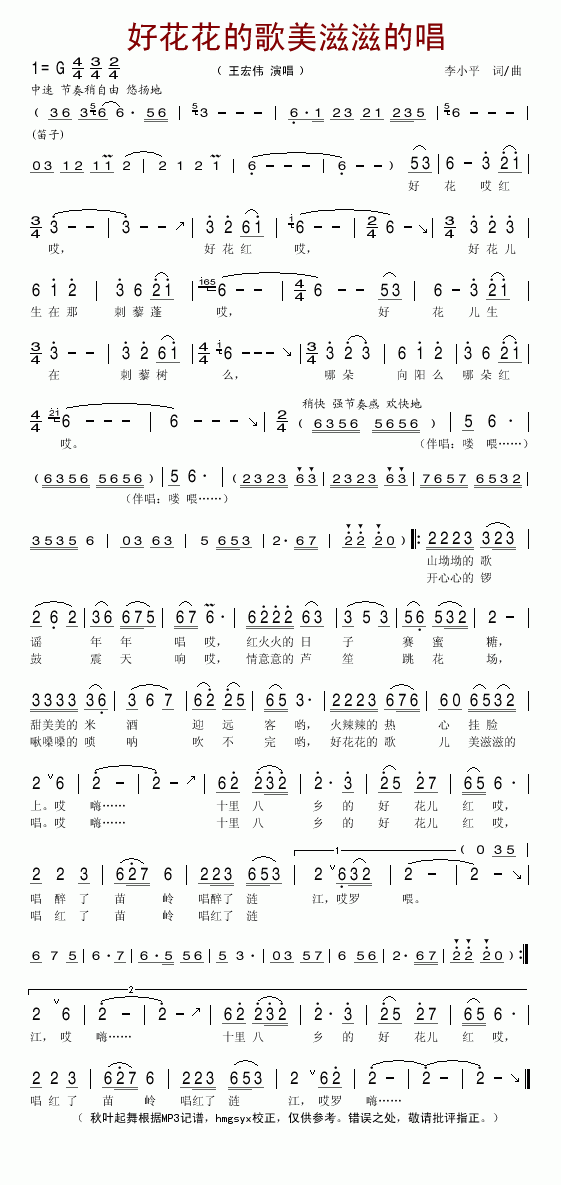 >> 好花花的歌美滋滋的唱-王宏伟(简谱)
