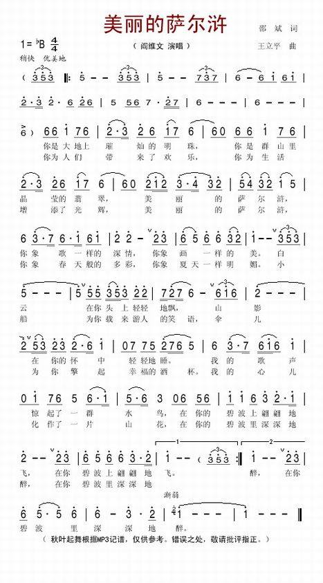 >> 美丽的萨尔浒-阎维文(简谱)
