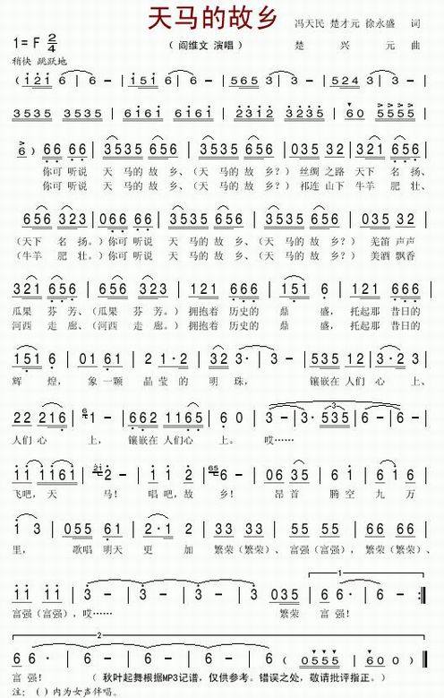 >> 天马的故乡-阎维文(简谱)