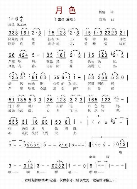 >> 月色-雷佳(简谱)