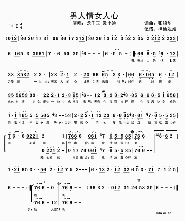 >> 男人情女人心-龙千玉 袁小迪(简谱)
