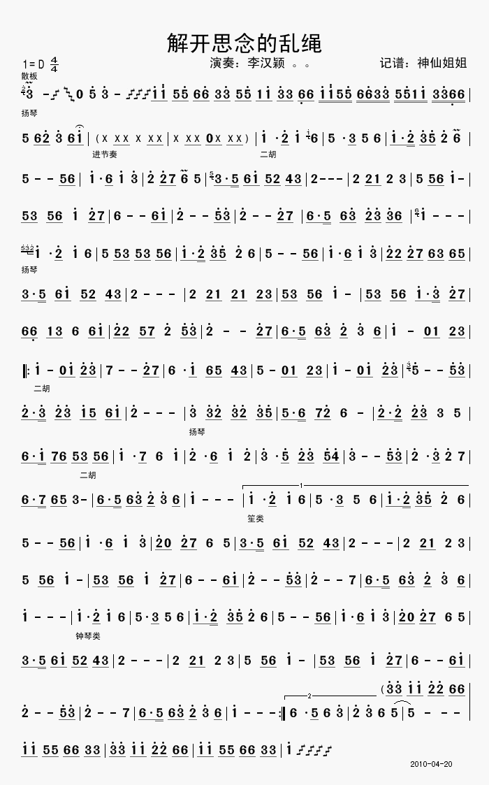 >> 解开思念的乱绳-李汉颖(二胡曲谱)