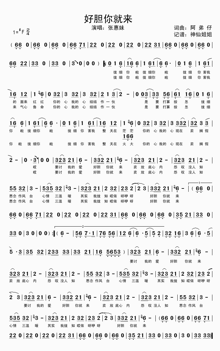 >> 好胆你就来-张惠妹(简谱)