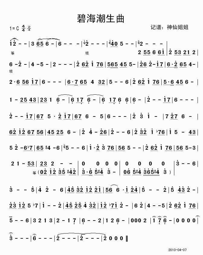 >> 碧海潮生曲-纯音乐(埙独奏旋律简谱)