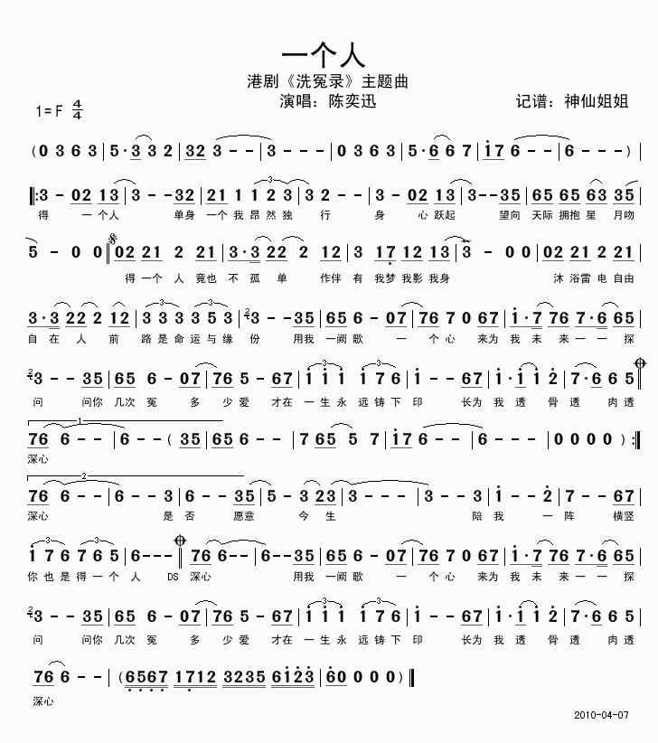 歌曲:一个人(《洗冤录》主题曲) 歌词:
