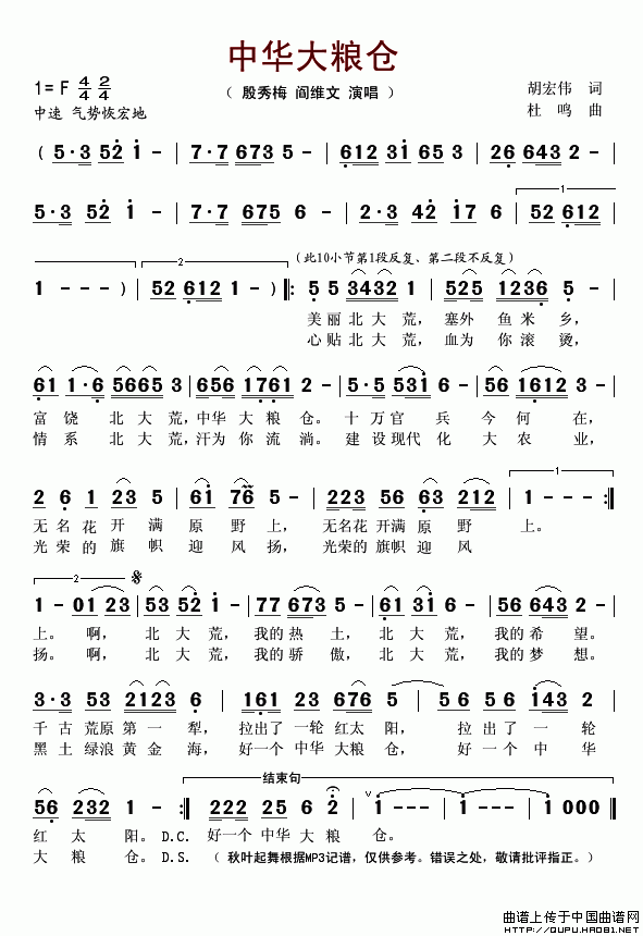 >> 中华大粮仓-殷秀梅 阎维文(简谱)