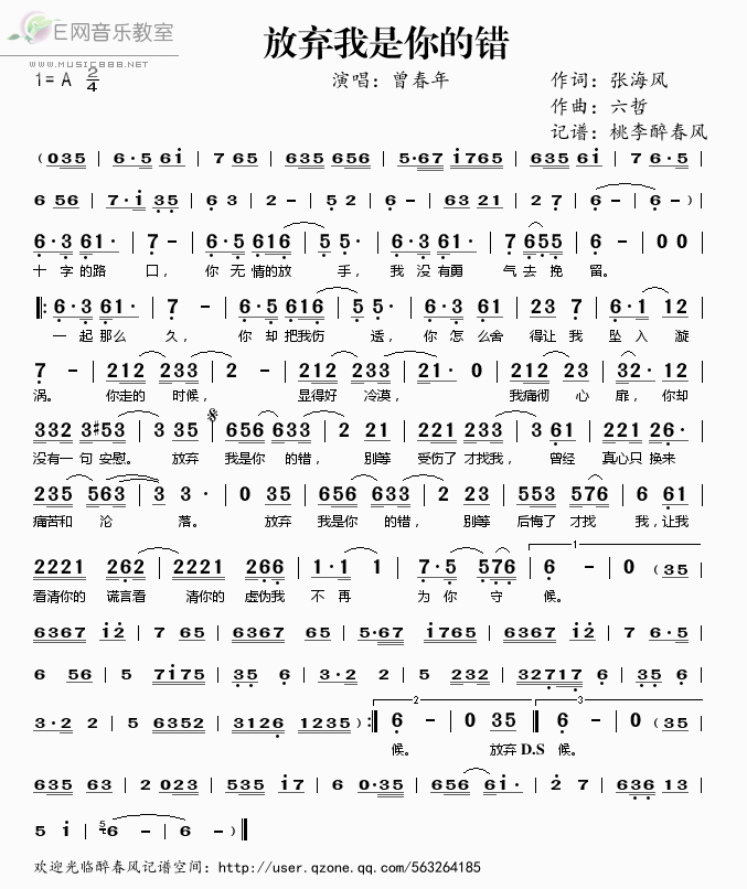 [00:03.06]曾春年 - 放弃我是你的错
