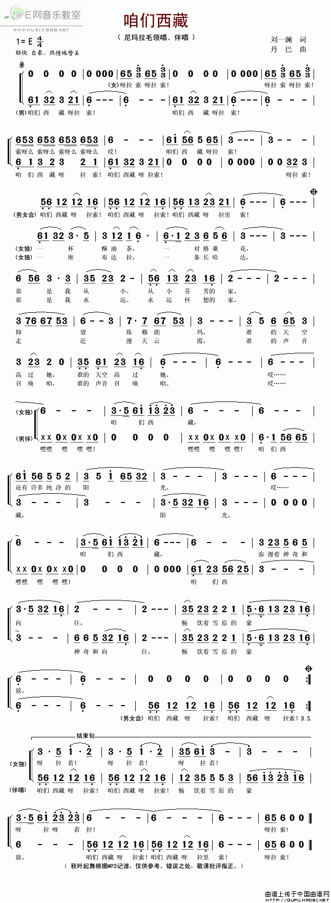 桑科我的家乡多么美-尼玛拉毛(简谱)