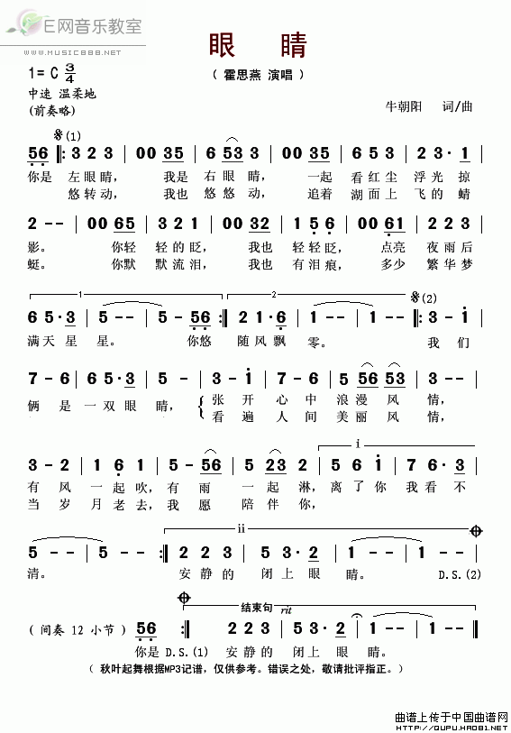 绿色的眼睛-带和弦(萨克斯曲谱)