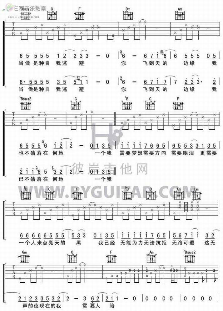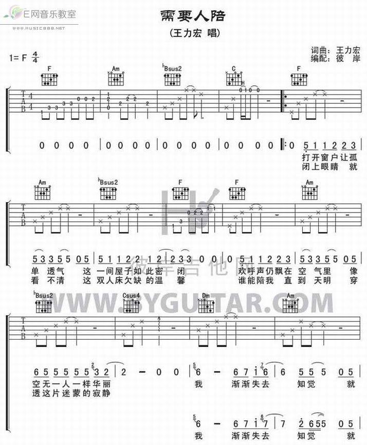 >> 需要人陪-王力宏(吉他谱)