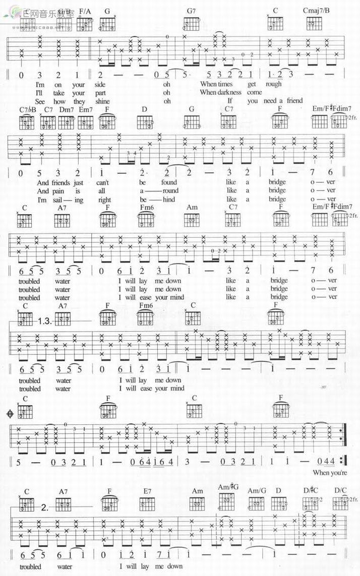 Bridge Over Troubled Water 忧愁河上的桥(吉他谱)