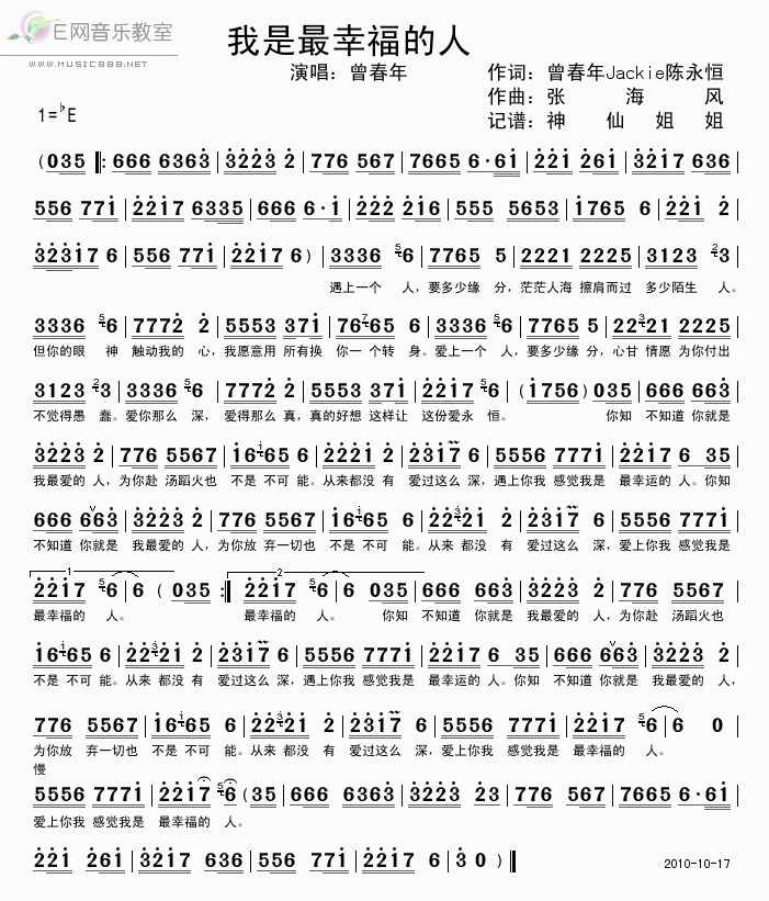 >> 我是最幸福的人-曾春年(简谱)