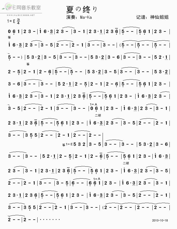 >> 夏の終り-Ma-Ka(旋律简谱)