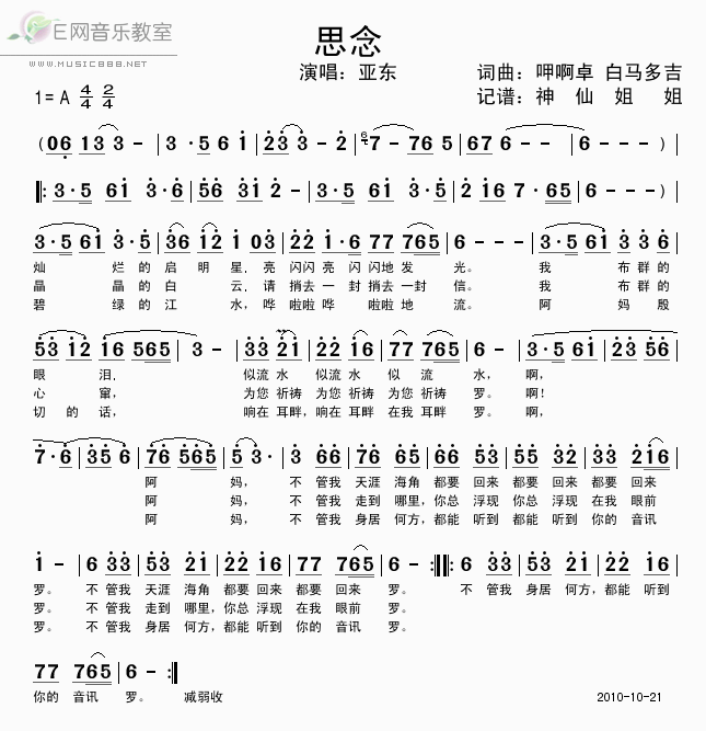今夜想起寨子里的姑娘-亚东(简谱+线谱)
