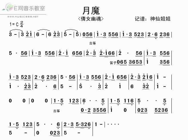 月魔 《倩女幽魂》配乐简谱