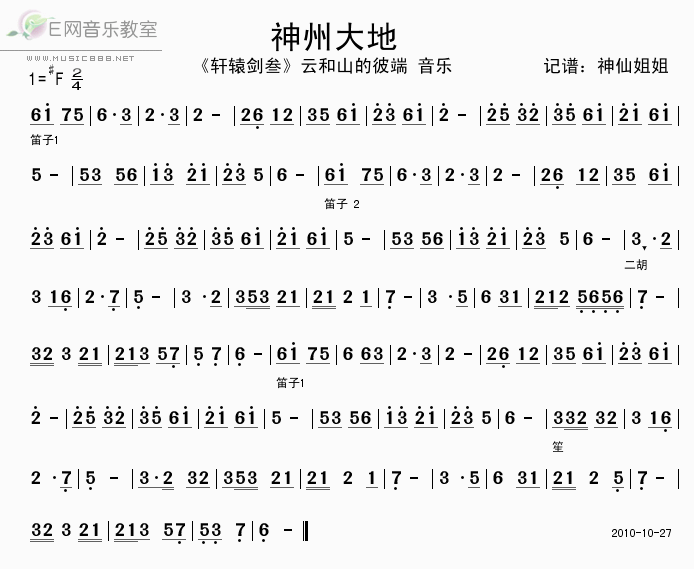 >> 神州大地<轩辕剑叁>云和山的彼端-游戏音乐简谱