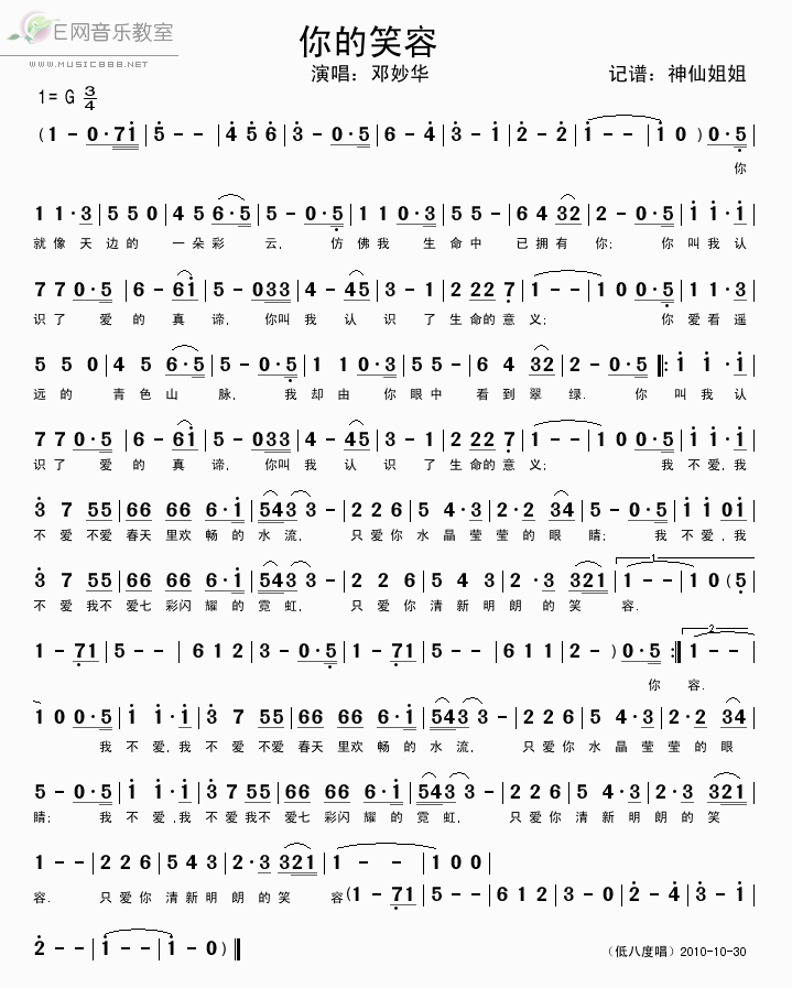 >> 你的笑容-邓妙华(简谱)