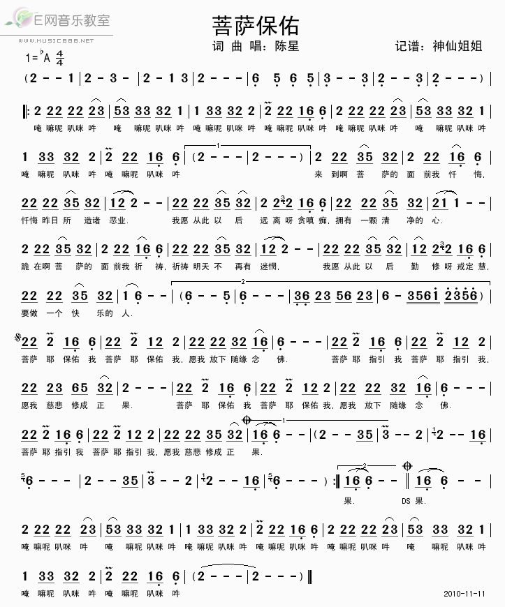 >> 菩萨保佑-陈星(简谱)