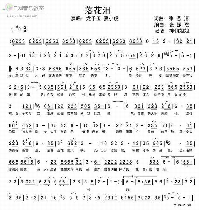 >> 落花泪-龙千玉 蔡小虎(简谱)