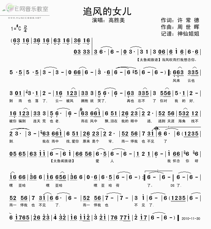 彩云伴海鸥-高胜美(海鸥飞处彩云飞影视简谱)