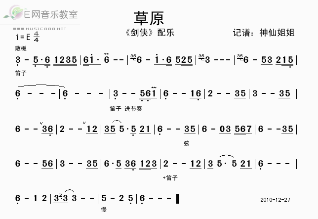 黄土风情-《剑侠》背景音乐(旋律简谱)