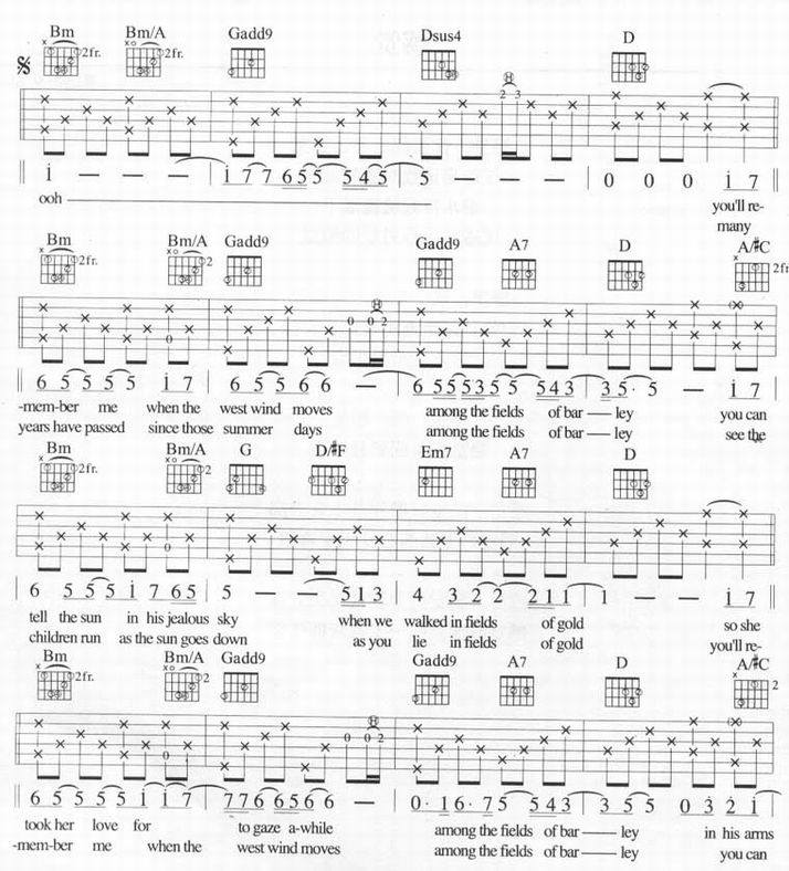 >> Fields Of Gold 金色田野-Eva Cassidy(吉他谱)