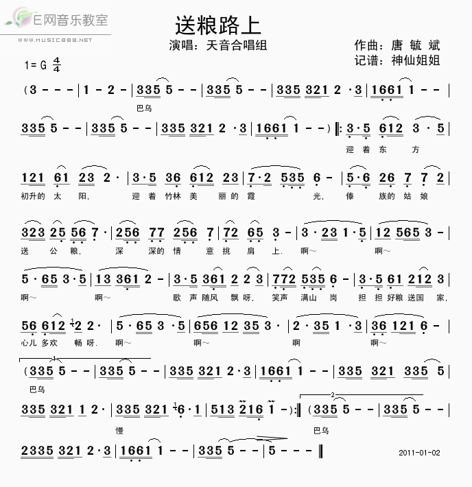 送粮路上-天音合唱组 歌词: