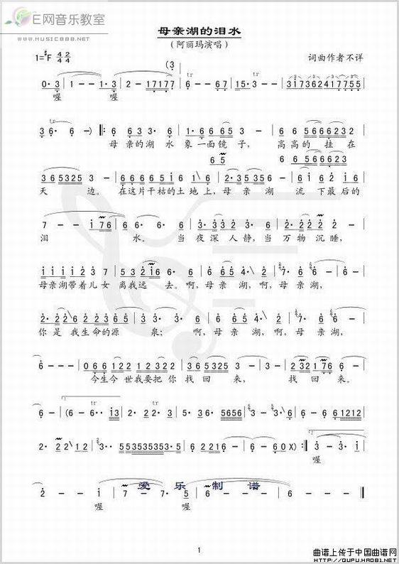 >> 母亲湖的泪水-阿丽玛(简谱)