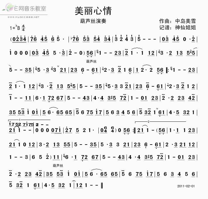 美丽心情-葫芦丝曲谱